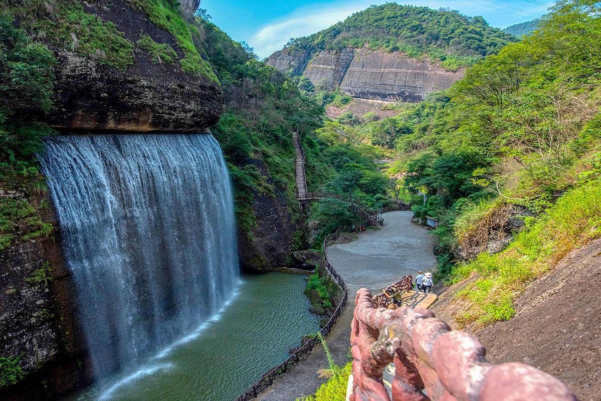 - 瀑布周圍怪石嶙峋,綠樹成蔭,是游客拍照留念的好地方。