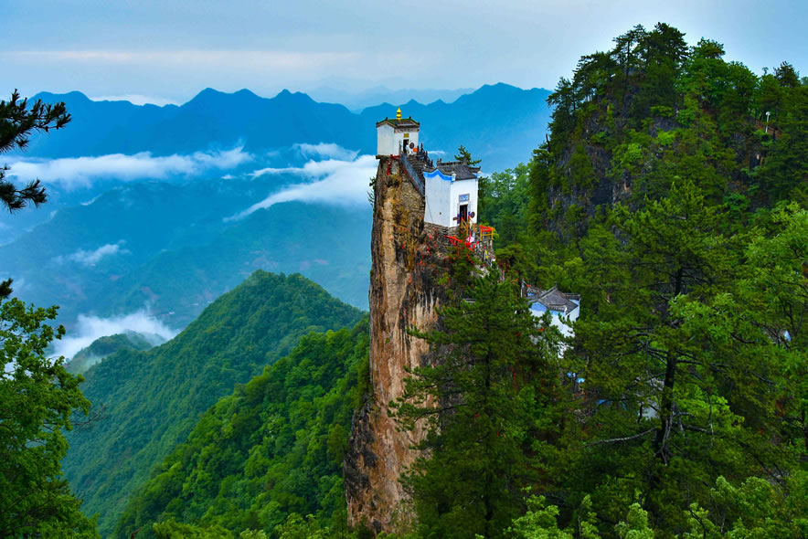 - 金頂觀音殿:始建于明朝,建在海拔1665.8米的絕壁之巔,三面懸空,僅靠4根石柱支撐,被譽(yù)為“天下最險道觀”,晨起云海環(huán)繞如臨仙境。