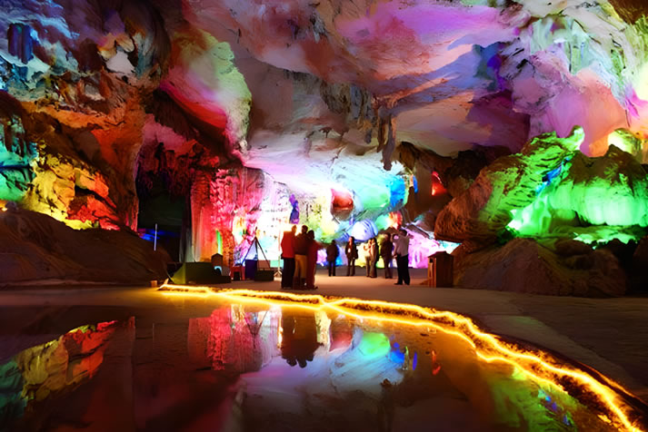 - 鐘乳石群:神龜探海、海狗觀天、雄獅倒掛、玉女獻(xiàn)花等形態(tài)各異的鐘乳石,搭配天然巖畫(龍、蝦、龜?shù)龋,宛如地下藝術(shù)殿堂。