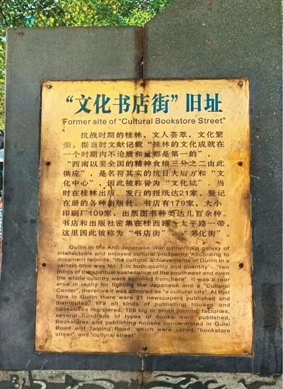 桂林“文化書店街”舊址紀念碑。