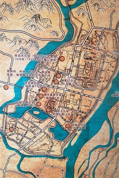 抗戰(zhàn)時期部分文化名人在桂林居住分布圖。