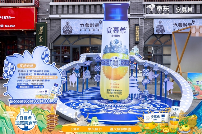 2025年9月23日至28日,隨著安慕希地域美食節(jié)第四站在貴州遵義1935文化街區(qū)圓滿落幕,京東旅行與安慕希攜手打造的"四城美味與文化盛宴"迎來收官。本次活動(dòng)以新上市的安慕希貴州刺梨酸奶為核心,聯(lián)合遵義旅游集團(tuán),深度融合苗族蠟染、竹編非遺技藝,通過地域美食定制、文化體驗(yàn)與品牌發(fā)布等多維創(chuàng)新,為現(xiàn)代消費(fèi)者呈現(xiàn)一場(chǎng)味覺與文化的深度對(duì)話,標(biāo)志著文旅跨界營銷進(jìn)入"地域深耕+文化再生"的新階段。