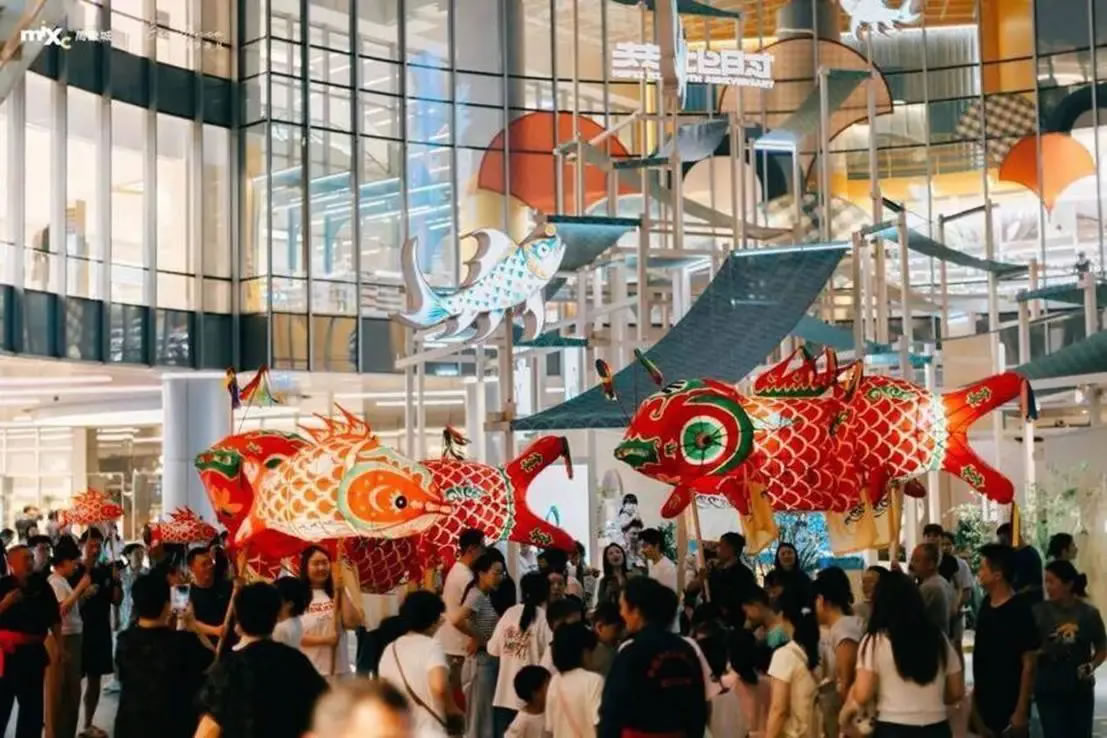 在合肥萬(wàn)象城,非遺魚燈璀璨綻放,為市民的假日生活增添了一抹浪漫的傳統(tǒng)韻味。(央廣網(wǎng)發(fā) 蜀山區(qū)供圖)