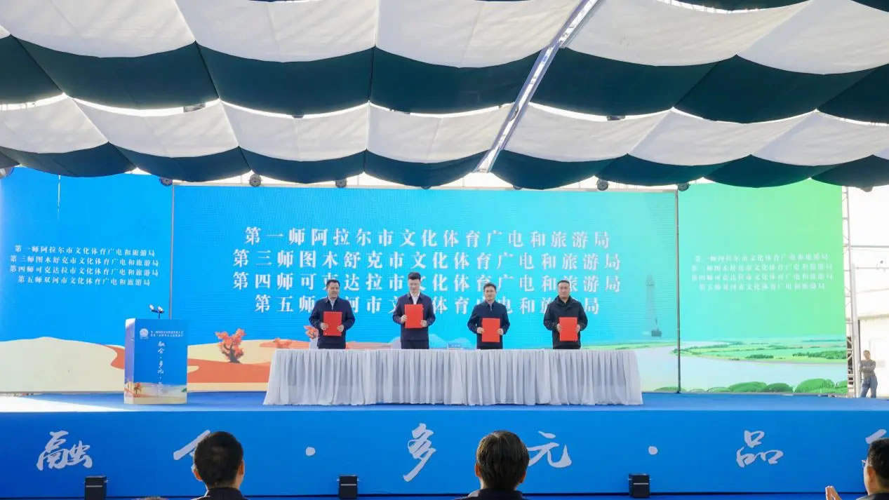 當(dāng)天,第一師阿拉爾市旅游發(fā)展大會暨第三屆塔里木文化旅游節(jié)文旅客商推介會同步舉辦。第一師阿拉爾市文化體育廣電和旅游局分別與第三師圖木舒克市、第四師可克達(dá)拉市、第五師雙河市的文化體育廣電和旅游局簽署合作共建協(xié)議,在旅游產(chǎn)業(yè)領(lǐng)域深化合作,推動區(qū)域文旅協(xié)同發(fā)展。第一師阿拉爾市文化體育廣電和旅游局、塔里木文旅集團(tuán),以及第一師四團(tuán)、七團(tuán)、十六團(tuán)依次登臺,重點(diǎn)推介了涵蓋沙漠探險、生態(tài)觀光、民俗體驗(yàn)等多個領(lǐng)域的文旅項(xiàng)目。