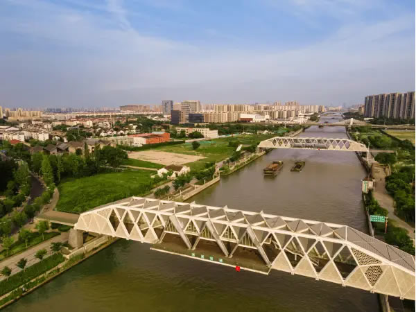 在滸墅關(guān),順應(yīng)民生所需,以文脈傳承、文化賦能滿足人民群眾對(duì)美好生活的向往,“紅房子”并非個(gè)例。就在距“紅房子”咫尺之遙的大運(yùn)河上,造型別具一格的滸關(guān)南橋、北橋吸人眼球。橋身,大量運(yùn)用三角形與菱形元素,充分彰顯現(xiàn)代結(jié)構(gòu)美學(xué);橋中,幾座“尖頂閣樓”突起,是特意營(yíng)造的觀水場(chǎng)所;橋下,運(yùn)河汩汩流淌,一艘艘貨輪推開(kāi)波紋向前駛?cè)ァ?/p>