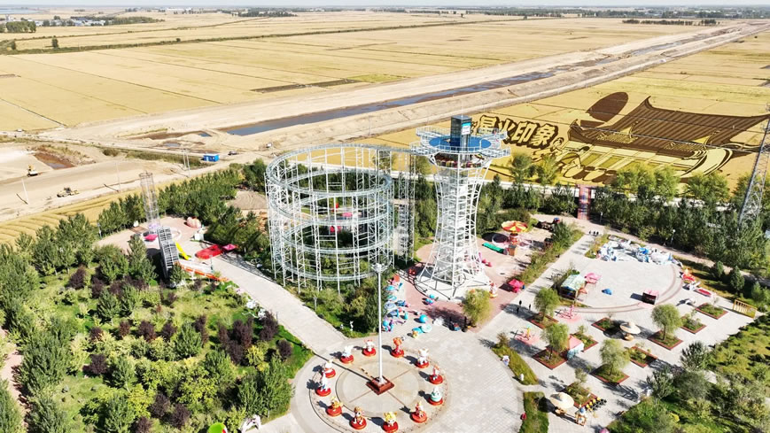 這是農(nóng)文旅深度融合發(fā)展的創(chuàng)新實(shí)踐。作為新中國第一個集體農(nóng)莊的誕生地,星火村曾創(chuàng)下多個“第一”,第一個拖拉機(jī)站、第一個農(nóng)民水稻科研小組、第一個寫入小學(xué)課本的新中國集體農(nóng)莊.....如今,這份紅色基因與5000平方米生態(tài)稻田、朝鮮族民俗風(fēng)情深度交融,催生出獨(dú)特的文旅IP。登上40余米高的星火塔,可俯瞰稻海翻波;體驗(yàn)430米玻璃水滑梯,能感受速度與清涼的碰撞;在星火時光供銷社追憶往昔,于星火工坊體驗(yàn)打糕制作,讓游客在一靜一動間觸摸歷史溫度與民俗魅力。自景區(qū)開園開始,首屆非遺美食文化節(jié)、寒地小龍蝦節(jié)、稻種嘉年華等特色創(chuàng)意活動相繼舉辦,共計吸引客流108萬余人,帶動收入8600萬元,印證了“以文塑旅、以旅興農(nóng)”的鮮活成效。